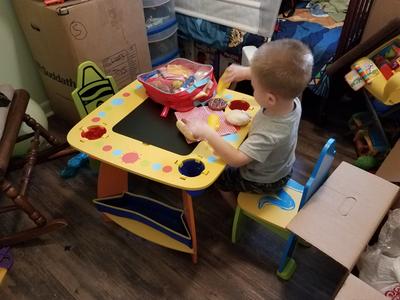 Update your playroom with this crayola desk and chairs set. The top can be a chalk board as well as a regular paint and color table. The crayola wooden table and chair set is the perfect size for home, playrooms and classrooms. Weight capacity per chair (lbs): The crayola wooden table and chair set is a wonderful and practical gift for your toddler.