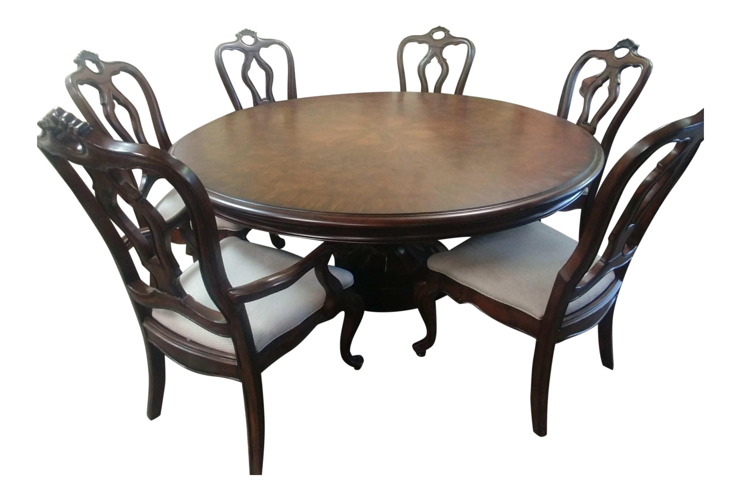Adding extra flair to this set. This collection includes an elegant wood table and six matching chairs in an aged brown cherry finish. Rated 3.8 out of 5 stars based on 134 reviews. (1) ozzie white 7 piece dining set $1,740. Browse furniture galore 7 piece dining set.